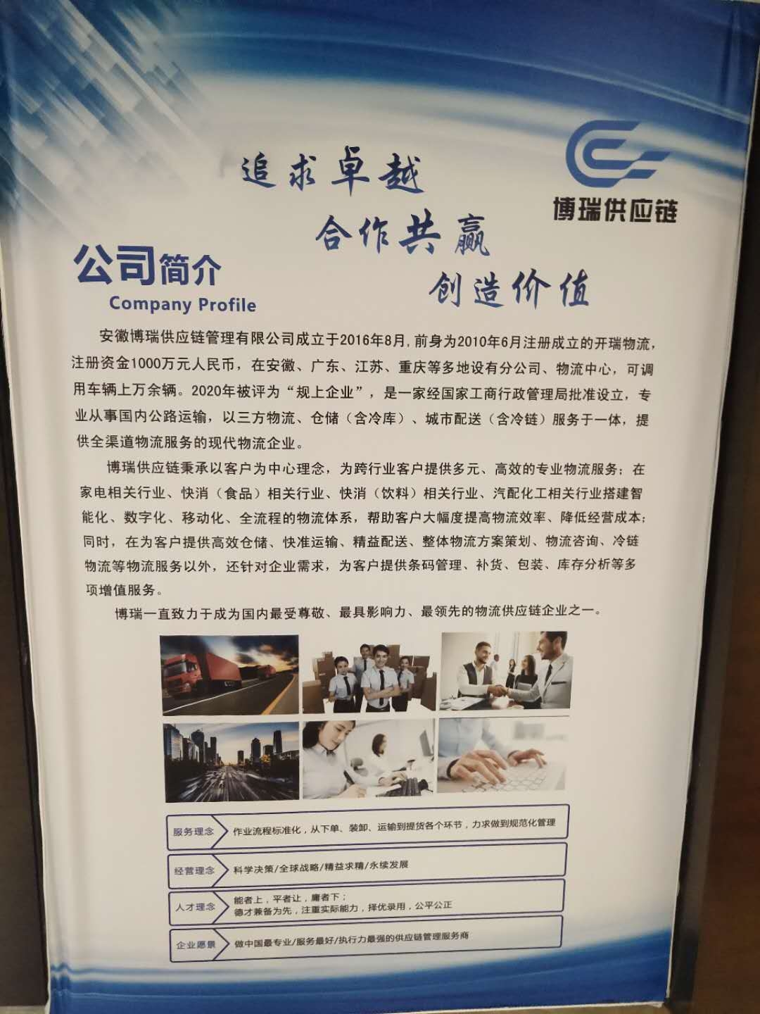 • 企業名稱安徽博瑞供應鏈管理有限公司