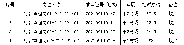 根據《肥東縣張集鄉2021年公開招考村級后備干部公告》(2021-09-14)的規定,資格復審已于2021年9月23日結束,因個人原因自動放棄資格復審,其放棄人員如下: