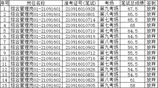 根據(jù)《肥東縣八斗鎮(zhèn)2021年公開招考村級(jí)后備干部公告》(2021-09-16)的招考要求,資格復(fù)審已于2021年10月8日結(jié)束,因個(gè)人原因自動(dòng)放棄資格復(fù)審,其放棄人員如下: