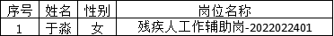 根據(jù)《廬陽區(qū)殘疾人聯(lián)合會2022年公開招聘政府購買服務崗位人員》(2022-2-21)相關要求,經(jīng)過網(wǎng)上報名、資格初審、筆試、資格復審、面試、體檢政審等程序,現(xiàn)將擬聘人員名單公示如下。