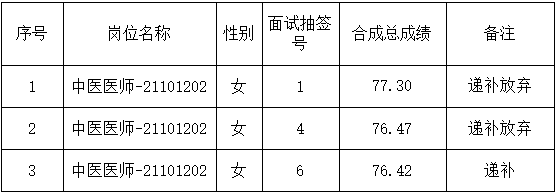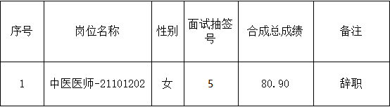 根據《合肥市廬陽區衛健委2021年聘用專業技術人員公告》(2021-10-12)的規定的相關要求,經過網上報名、資格審核、筆試、面試、體檢政審等程序,由于以下1名考生自動辭職。