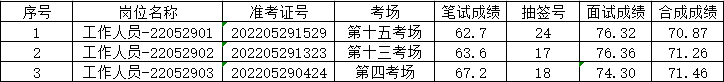 根據公告內容,因個人放棄或體檢、政審不合格造成崗位空缺,在面試人選中按總成績從高分到低分依次等額遞補,故遞補人員如下: