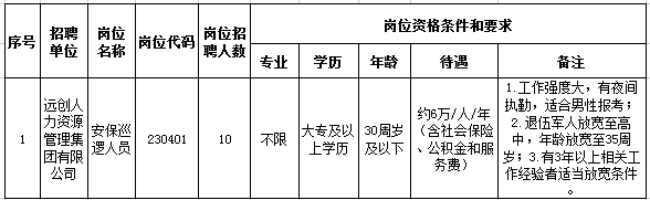 因工作需要,經研究同意,遠創人力資源管理集團有限公司面向社會公開招聘安保巡邏人員10名。現將有關事項公告如下: