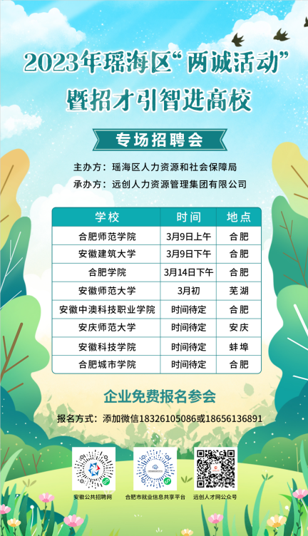 企業(yè)免費(fèi)報(bào)名參會(huì)#2023年瑤海區(qū)“兩誠活動(dòng)”暨招才引智進(jìn)高校專場招聘會(huì)